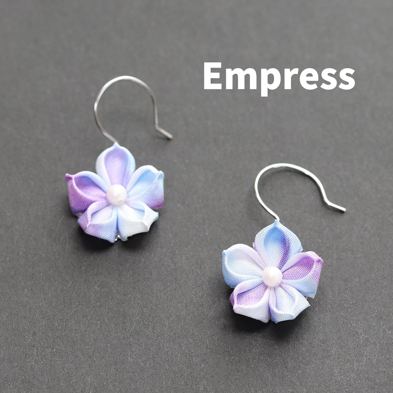 どちらも布で作られたつまみ細工を使用しているため非常に軽く、長時間つけていても耳に負担がかかりません。
